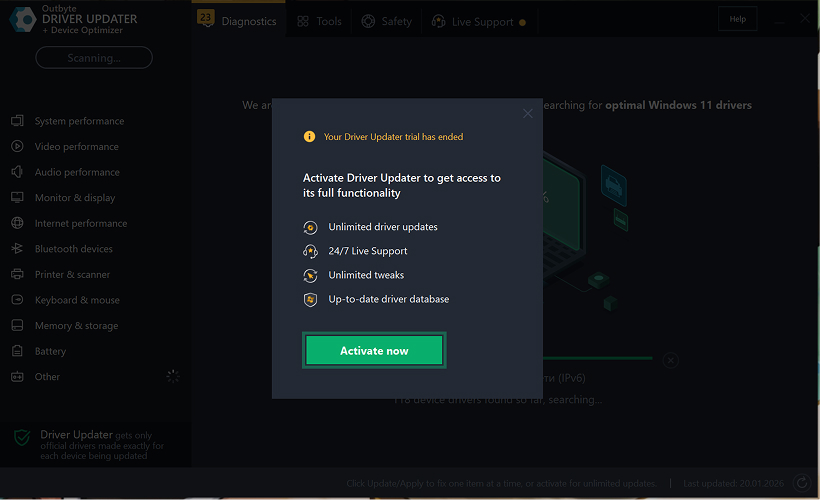 Limitations: trial version offers an unlimited number of scans, free driver backup and rollback. Registration for the full version starts from USD 29.95. See more information about Outbyte and uninstall instructions. Please review Outbyte EULA and Privacy Policy