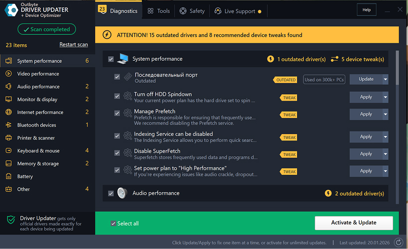 After launching the program, it will automatically start scanning your system and checking installed drivers.