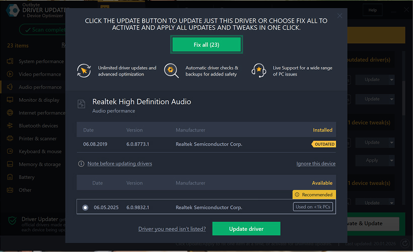 How to Update a Driver for Free Using Outbyte Driver Updater